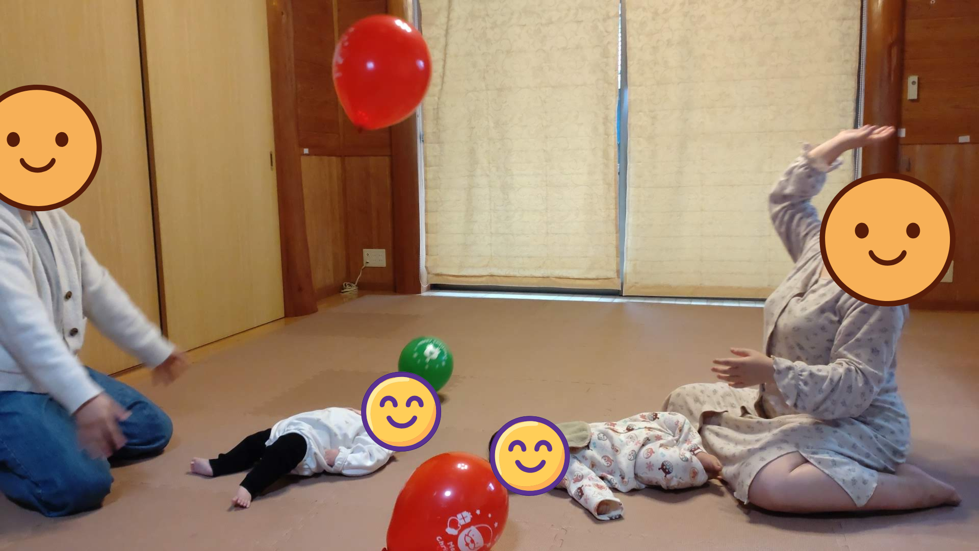 クリスマスの音楽にあわせて風船を使ってフワフワ🎈飛ばしたら、空に浮かぶ風船を目で追ったり、そっと触れたり、赤ちゃんたちのキラキラした目がとても印象的でした。