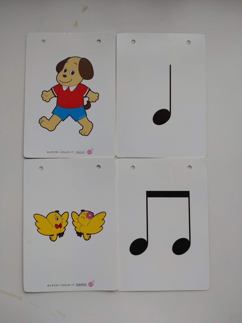 (リズムカード、数字カード、鍵盤カードなどで繰り返しレッスンします)